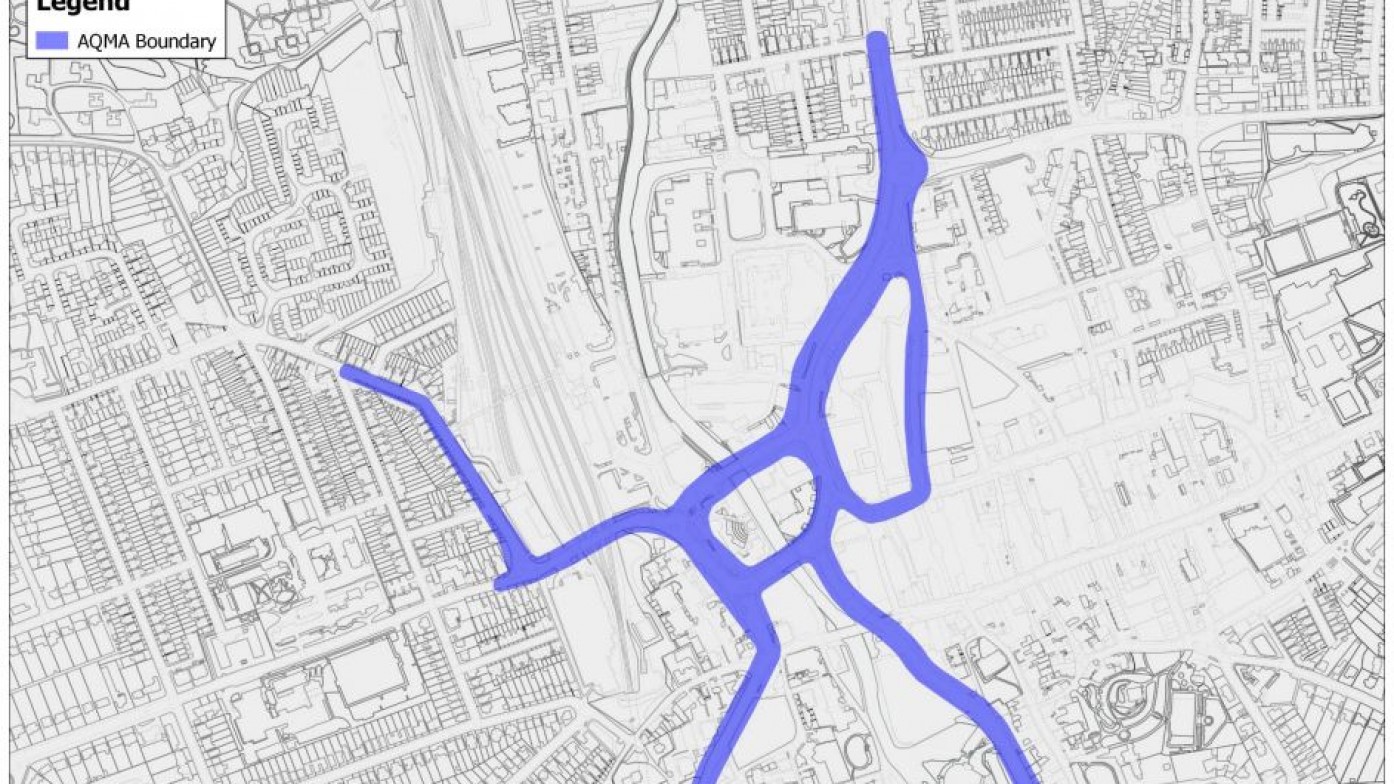 The area designated covers an area for a pollutant nitrogen dioxide within the area and roads indicated. See Map at foot of post.