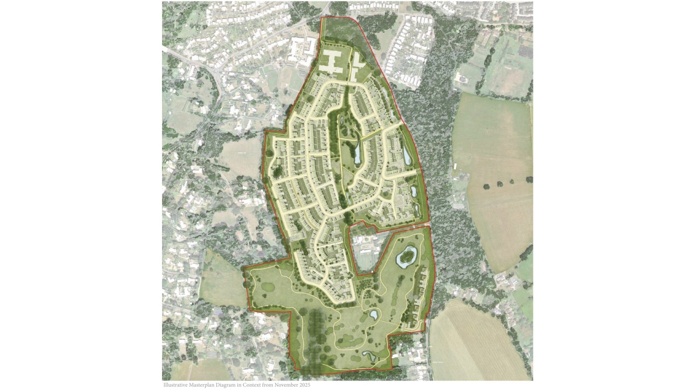 Outline planning application applied for 650 homes (Use Class C3) with associated parking, infrastructure and open space; a care home (Use Class C2), and commercial and community uses and a publicly-accessible SANG country park (Environmental Statement submitted)