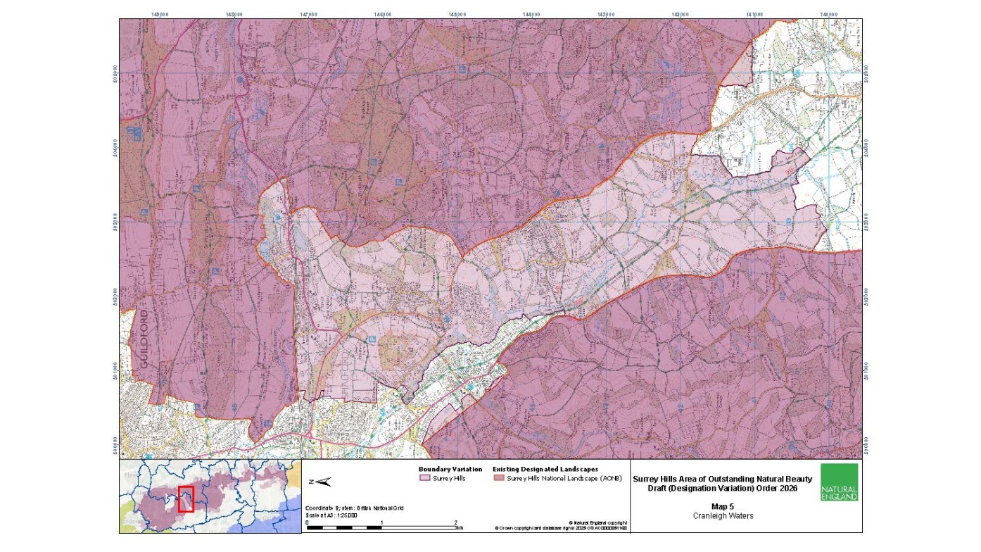 Below we have added images of the maps of the key areas that affect Guildford.